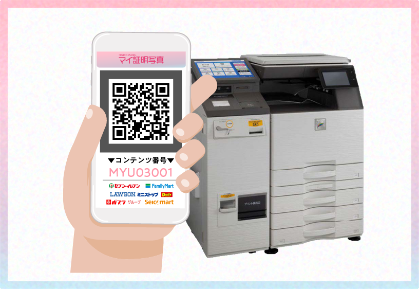 1. ユーザーはスマートフォンやPCから自身の顔写真をアップロードまたは撮影し、サイズ選択・画像補正等を行った上で、コンビニで証明写真として印刷することができます。